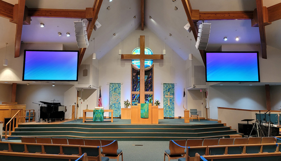 Other acoustic challenges throughout the church included echo and bounce-back which were addressed by Harmon AV. “One issue we had to address was the reverberance of the room, which they liked for the traditional services, so they didn’t want to change that,” continued Harmon. “We talked about room acoustics and treating it, but the music minister didn’t want to change the natural acoustics of the room. Another issue brought up by one of the pastors, was the ‘echo in a cave’ sound of being when speaking on the stage, which we determined was bounce-back from the backwall. We knew we could solve these issues with a line array system and few fills throughout the room,” said Harmon