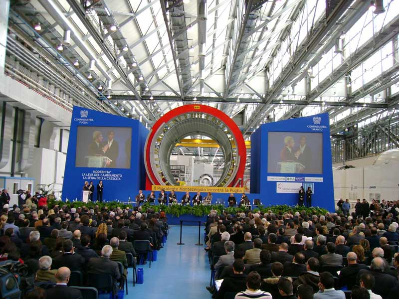 The sound system was installed by Mr. Graziano Radicci of the company Idea Concerti with the consulting of RCF for the acoustic design of the event. The huge plant, in fact, was filled with metallic structures that could damage, due to the massive reverberation of the sound, the intelligibility of the speeches. The RCF's Team went on the spot for a survey and developed, with special software, the acoustic design in order to choose the right speaker system and their its right set-up.