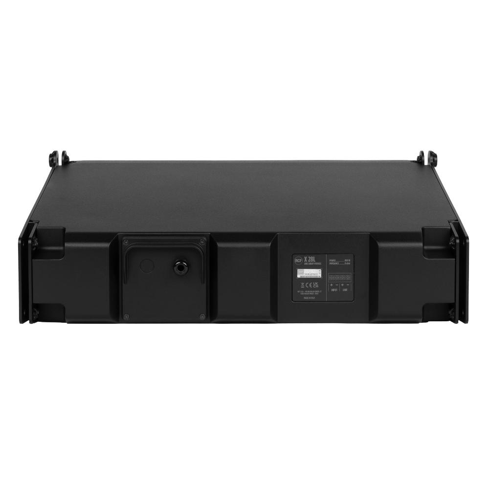 X 28L is a line array module designed for fixed indoor and outdoor installations requiring high audio quality and extreme durability. Thanks to the two 8'' woofers and the 3'' voice coil compression driver it offers a powerful and clear sound with constant 110° x 20° directivity. The cabinet is made of high-density polyurethane, while the aluminum grille guarantees protection from dust and rain, thanks to a waterproof fabric layer. X 28L is equipped with array mechanics that allow angle adjustment between modules from 0° to 20° with 2° steps.