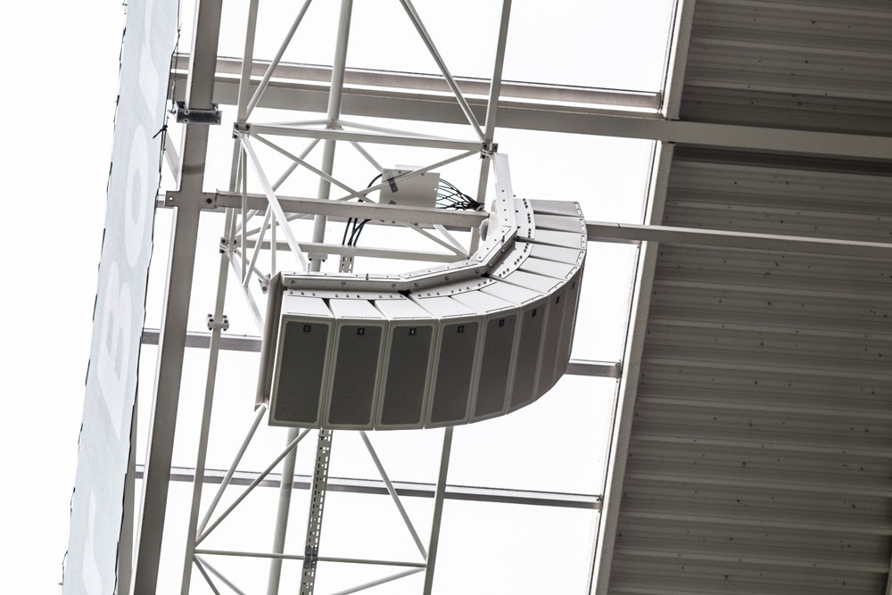 En este caso, las duras condiciones meteorológicas y la seguridad no han sido los únicos factores determinantes de la elección de arrays en línea de altavoces pasivos resistentes a la intemperie, sino que también han contribuido los distintos requisitos de adaptación. En particular, todos los arrays de altavoces en línea HL20 WP y HL2290 instalados en el Borussia Park se construyeron en madera contrachapada de 21 mm y están provistos de cable impermeable FRNC fijo con revestimiento resistente al fuego autoextinguible. En la prueba final del equipo realizada por el cliente participaron las autoridades locales.