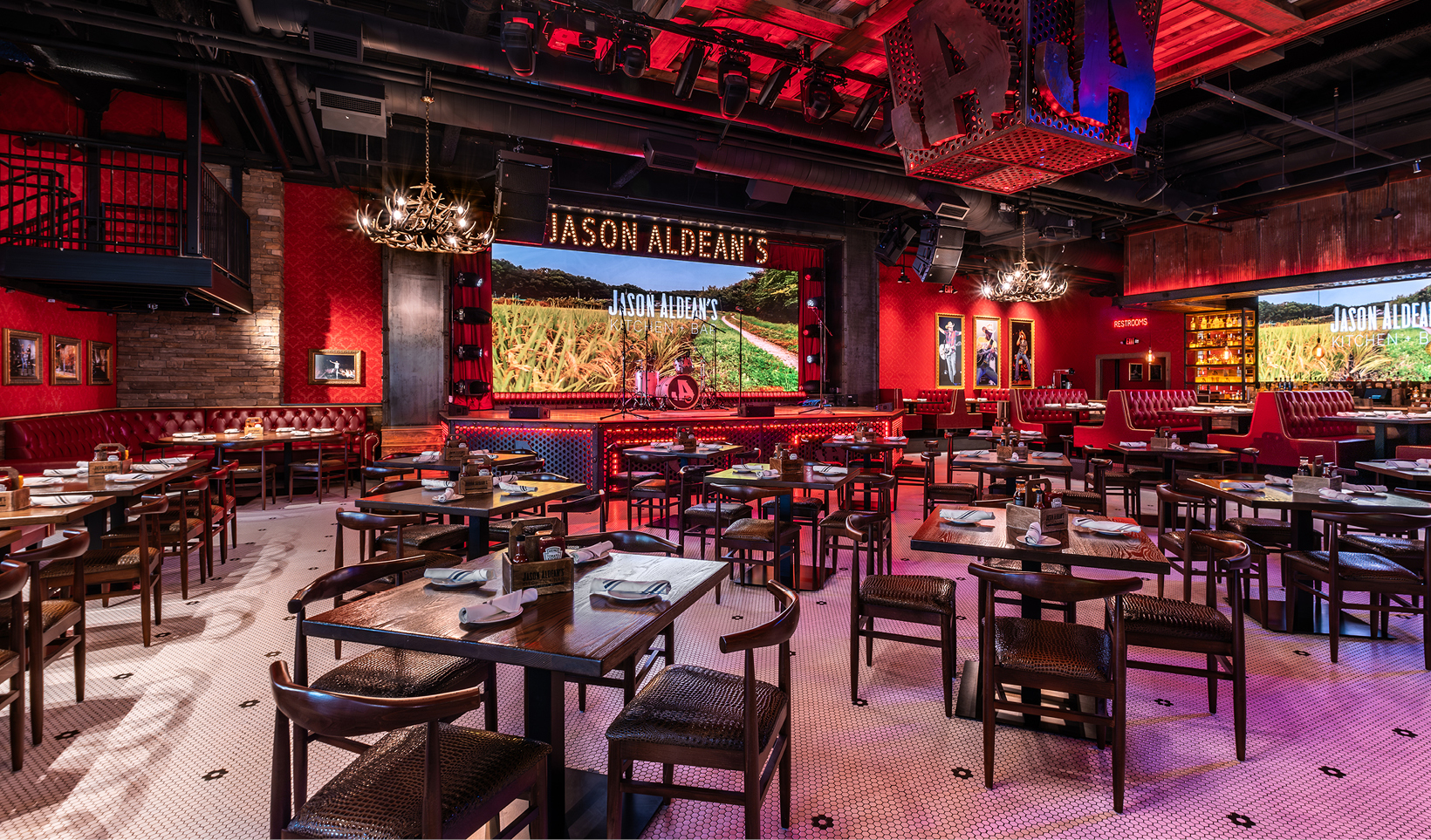 In the heart of the Las Vegas Strip, the latest Jason Aldean’s Kitchen + Bar brings bold sound to the city’s upscale 63 CityCenter development. With two performance stages across two floors, the venue needed a powerful, high-fidelity system that wouldn’t compromise acoustic isolation—a critical factor with luxury tenants above and around.
