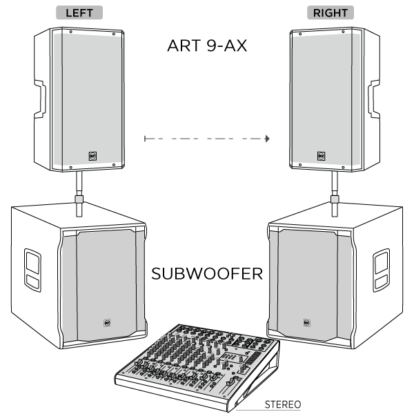 Collega il tuo sub al diffusore ART 9-AX, seleziona il preset nel menu e sei già pronto.