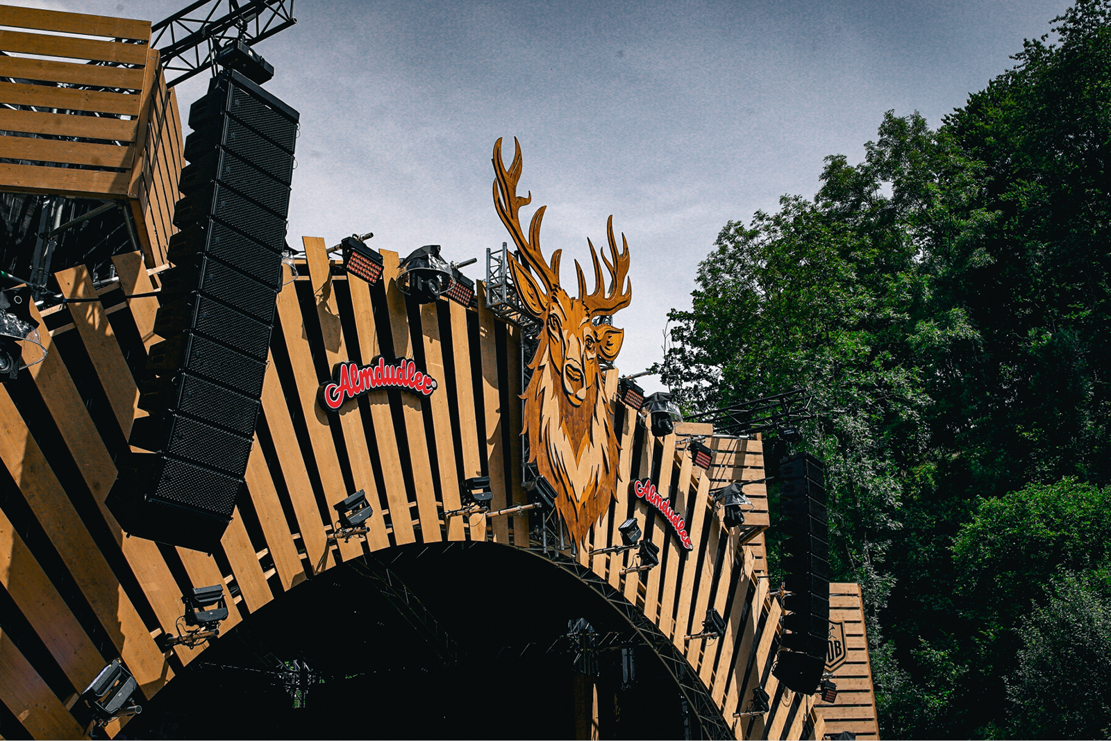 The Almdudler Sepp a Reh Stage, one of the festival’s main open-air venues, required a solution with long throw and high intelligibility due to its narrow site layout. F&L Eventsolutions GmbH supplied and managed a TT+ Audio GTX system.