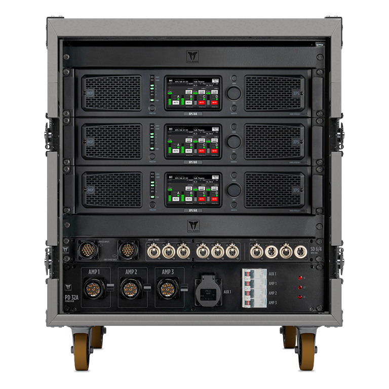 100 GTX 10 line array modules (72 flown, 28 ground-stacked and as nearfills);