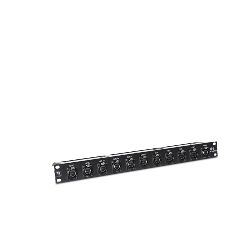 The NP1 Network panel is equipped with 11 Ethercon connectors, making it an ideal solution for establishing stable network connections (such as CAT5e or CAT6 cables). Its primary application is completing the TTR 16K rack by providing reliable network links to XPS 16K amplifiers and external Ethernet switches. This panel is engineered for stable digital signal distribution and network management in professional setups.